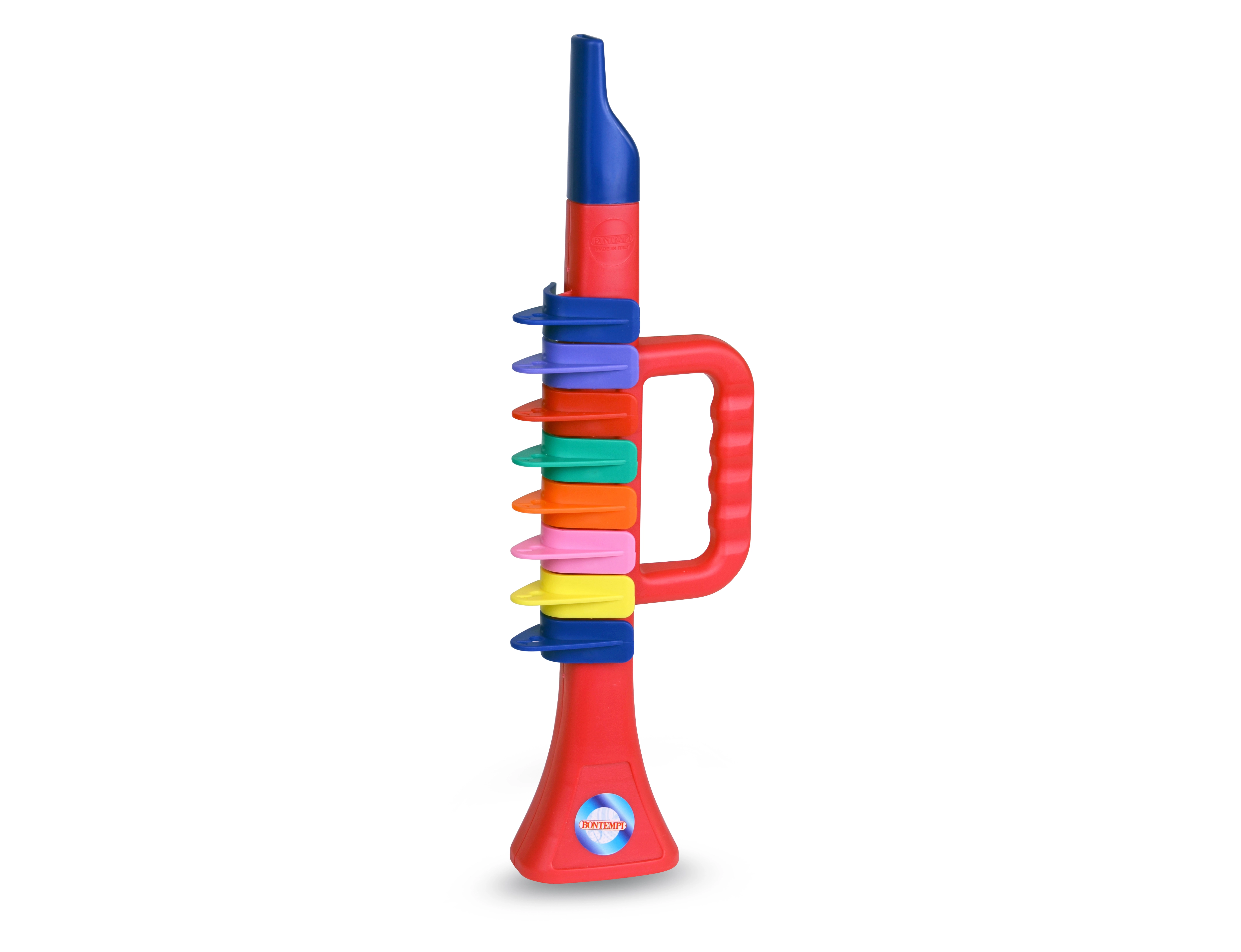 Odkrijte veselje do glasbe s plastično trobento z 8 tipkami v živo rdeči barvi. Zaradi lahke zasnove je udobna za držanje tudi za mlajše otroke in je odlična izbira za prvi stik s pihali. Kakovostna italijanska izdelava zagotavlja trpežnost in dolgo življenjsko dobo.