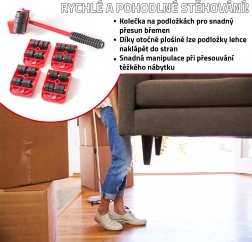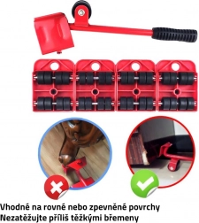 Ta kompaktni in funkcionalni set je idealen za dom, pisarno in delavnico. Z vzvodom preprosto nekoliko dvignete pohištvo in pod vsak kot namestite transportne ročke. Nedrseča površina ohranja predmet stabilen, vrtljiva ploščica 360° pa omogoča natančno usmerjanje brez nepotrebne obremenitve hrbta.