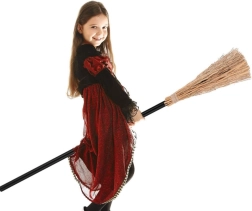 Čarovniška metla je popoln pripomoček za male čarovnice na Noč čarovnic. S svojo dolžino 90 cm je izdelana iz lahkih in trpežnih materialov, kar omogoča enostavno uporabo in varnost za majhne otroke.