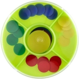 Otroška igra Bolhe je zabavna igra, ki razvija fino motoriko in koncentracijo pri otrocih. V paketu najdete štiri raznobarvne sete kolesc, vsak set vsebuje pet majhnih kolesc in eno veliko. Igra vsebuje tudi škatlico s številnimi predalčki, ki omogočajo različne igralne kombinacije. Cilj je s pomočjo velike bolhe spraviti vse majhne bolhe v predalčke v škatlici.