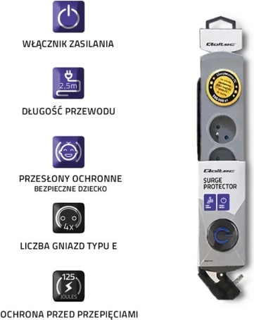 Priključite več naprav na en vir energije s to prenapetostno zaščito, ki je idealna za ohranjanje reda pod pisalno mizo ali za televizorjem. Opremljena je s štirimi vtičnicami in kablom dolžine 2,5 metra. Quick Switch ponuja praktično osvetljeno nožno stikalo za enostavno upravljanje brez potrebe po pripogibanju do stikala.