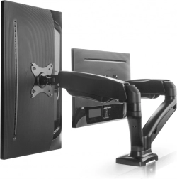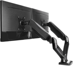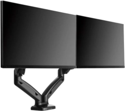 Elegantni dvojni nosilec za monitorje za diagonale do 32" sprosti prostor na mizi in izboljša ergonomijo dela. Zahvaljujoč plinskim rokam ponuja tekoče nastavljanje višine, vrtenje in nagib, ima integrirano urejanje kablov in hitro montažo zaradi hruškastega VESA nosilca.