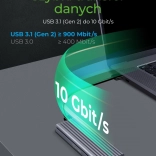 Izkoristite vmesnik USB 3.1 Gen 2 (Type‑C) do 10 Gb/s in NVMe PCIe 3.0 x2 za realne hitrosti okoli 1000 MB/s – idealno za delo z velikimi projekti, varnostne kopije in prenos 4K videa.
