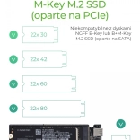 Namestitev je preprosta in hitra, ohišje podpira diske s ključem M‑Key in dolžinami 2230/2242/2260/2280. Na voljo sta LED za stanje napajanja in aktivnosti ter praktično stikalo za zaščito pred pisanjem, ki prepreči neželene spremembe ali brisanje podatkov.