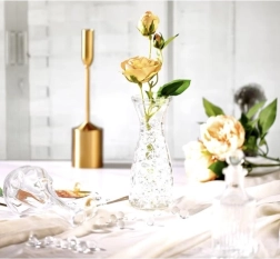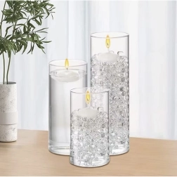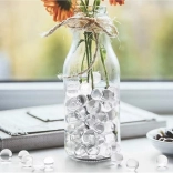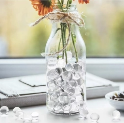 Prozorne perle aranžmajem dodajo čist, moderen videz ter stabilizirajo stebla cvetlic in sveče v steklenih posodah.