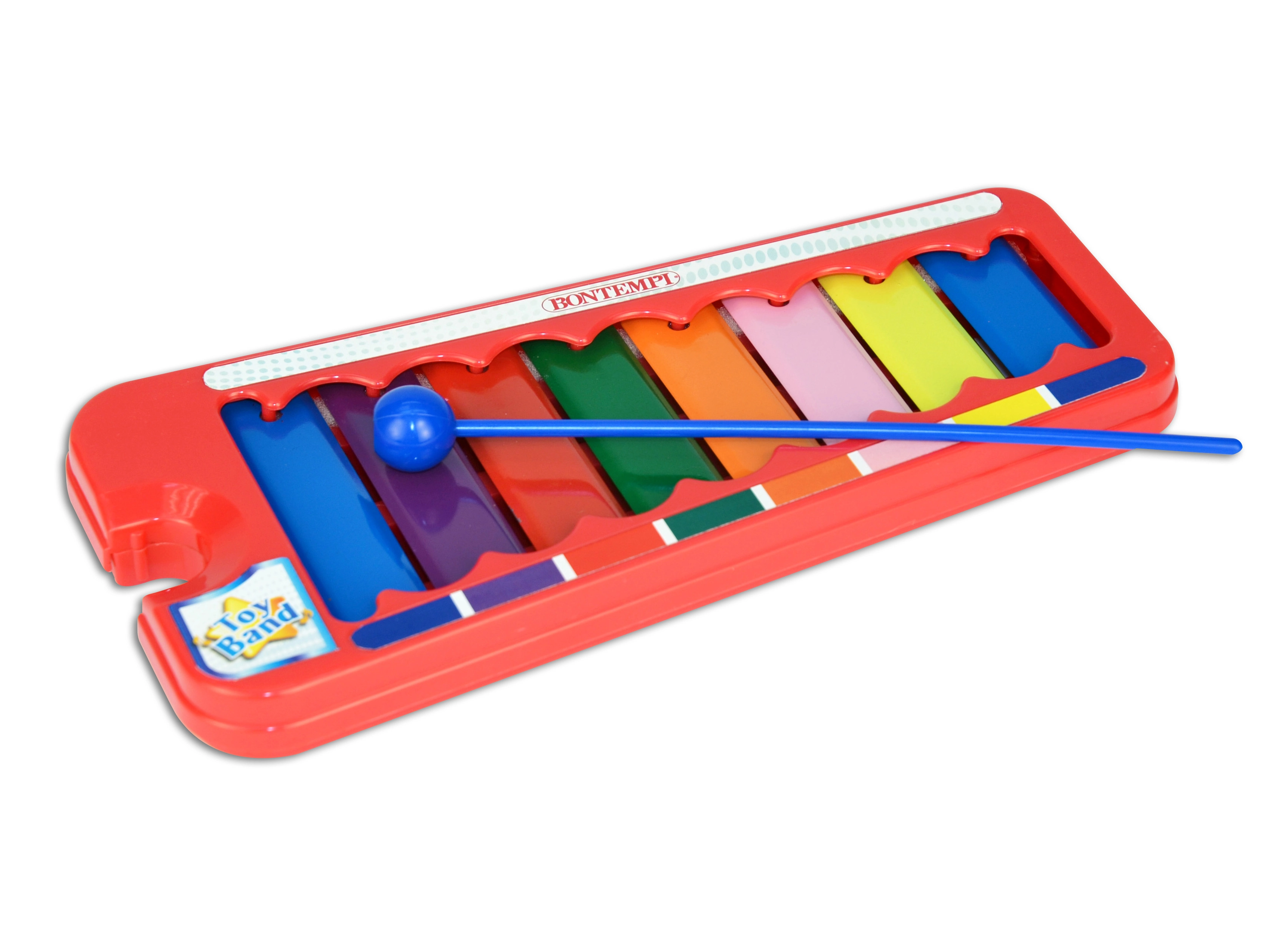 Odkrijte veselje do glasbe z otroškim ksilofonom BONTEMPI. Zahvaljujoč 8 barvitim kovinskim ploščicam se bodo otroci naučili razločevati tone, ritem in preproste melodije. Lahka plastična paličica je idealna za majhne otroške roke.