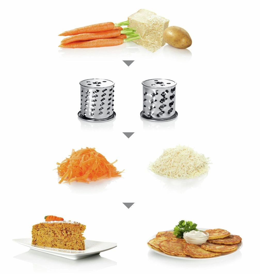 - Funkcije noža (več kot 10 funkcij) omogočajo mletje mesa in rib, pa tudi ribanje zelenjave, sadja, sirov in drugega