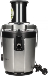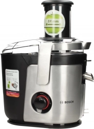 S sokovnikom Bosch odpade potreba po rezanju sadja in zelenjave zahvaljujoč veliki vstopni odprtini s premerom 84 mm. Njegov keramični nož zagotavlja visoko učinkovitost in enostavno čiščenje. V enem postopku sočenja lahko pridobite do 1,5 litra soka.