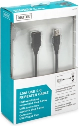 Aktivni podaljševalni kabel USB-A na USB-A (M/F) dolžine 15 m je idealen za priklop tiskalnikov, kamer, tipkovnic, mišk in drugih USB naprav, nameščenih dlje od računalnika. Vgrajena elektronika zagotavlja stabilen signal in ohranjanje hitrosti USB 2.0 High Speed do 480 Mb/s.