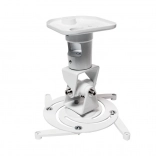 Univerzalni stropni nosilec za projektor v beli barvi za varno namestitev na raven strop. Nosilnost do 15 kg, omogoča naklon ±25°, vrtenje za 360° in nastavljive kovinske roke za razmik 180–310 mm. Aluminijasti tlačni ulitek zagotavlja trdnost in dolgo življenjsko dobo, montažni material je priložen.