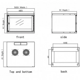 - Hlajenje in kabli: pripravljeno za 2× ventilator 120 × 120 mm v zgornjem in spodnjem panelu, kabelski prehodi 225 × 45 mm.