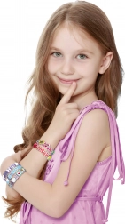 Set spodbuja ustvarjalnost, potrpežljivost in fino motoriko. Vsako zapestnico lahko prilagodiš razpoloženju ali obleki in jo kadarkoli spremeniš. Širok nabor črk in simbolov ponuja neskončne možnosti ustvarjanja.