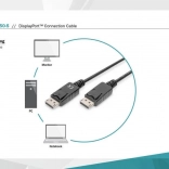 Po zaslugi zaponk na konektorjih povezava ostane trdna in varna brez nenamernega odklopa. Kabel je skladen s standardom DisplayPort 1.1a in je primeren za priklop računalnikov, delovnih postaj in prenosnikov na monitorje, projektorje ali druge zaslone z vhodom DP.
