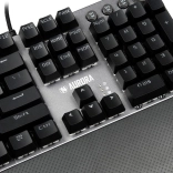 Poseben nadzorni kolešček omogoča enostavno spremembo načina osvetlitve ali glasnosti, kar dodaja komfort pri uporabi. Tipkovnica je idealna izbira za zahtevne igralce zaradi možnosti blokiranja kombinacije Win+L, ki preprečuje nenamerno zaklepanje računalnika med igro.