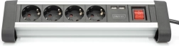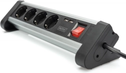 Štiri električne vtičnice in dva USB-priključka omogočajo napajanje in polnjenje več naprav hkrati, idealno za sodobne pisarniške potrebe.