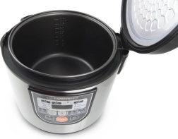 Večfunkcionalno kuhanje: Ta multicooker vam omogoča hitrejšo in bolj zdravo pripravo vaših najljubših jedi. Zahvaljujoč preprostemu in intuitivnemu LCD zaslonu lahko enostavno nastavite funkcije kuhanja in prilagodite čas vašim potrebam.