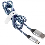 Tekstilni opleten plašč povečuje odpornost proti pregibanju in zapletanju, medtem ko kovinski videz, profilirani zaključki zagotavljajo eleganten videz in udobno uporabo. Kabel je združljiv s širokim naborom naprav – pametnimi telefoni, tablicami, zunanjimi diski in novejšimi prenosniki z USB‑C.