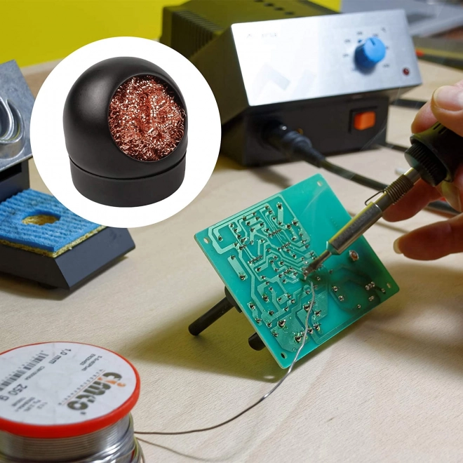 Čistilno sredstvo je sestavljeno iz dveh delov, od katerih je prvi material iz kovinske volne. Spajkalno konico lahko na tem materialu obrišete, da odstranite ostanke spajkanega materiala veliko učinkoviteje kot s standardno gobo. Sama kovinska volna je nameščena v kompaktnem zaobljenem nosilcu, ki pomaga zagotoviti, da je čistilec konic praktičen in ne zavzema delovnega prostora.