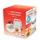 Izdelovalec sladoleda Esperanza Vanilla je namenjen vsem, ki si želijo doma uživati v slastnem sladoledu. S kapaciteto 0,6L lahko pripravi sladoled v 15-30 minutah.