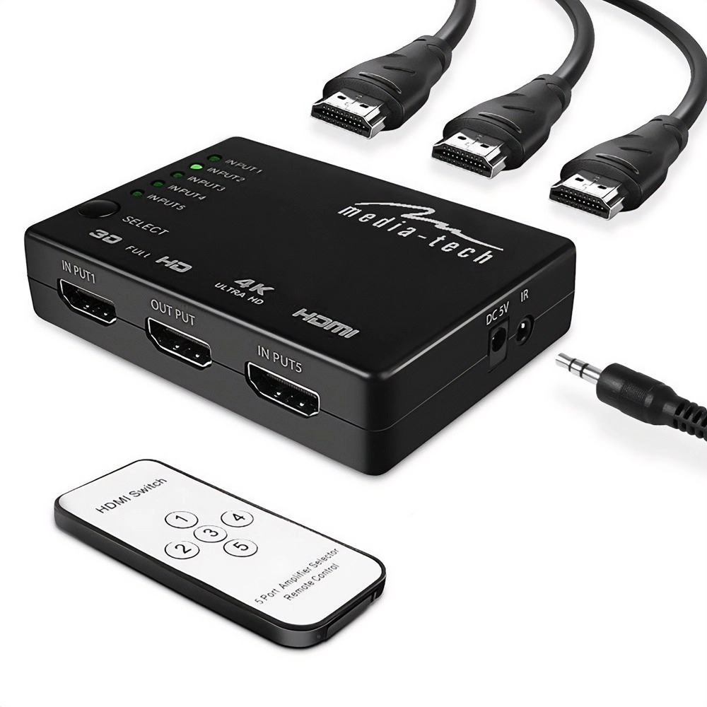 Kompakten 5‑portni HDMI preklopnik znamke MEDIA-TECH vam omogoča priklop do petih naprav na en televizor ali monitor in enostavno preklapljanje med njimi. Podpira 4K Ultra HD, Full HD, 3D video ter 12‑bitno barvno globino in obvlada napredne avdio formate, kot sta DTS‑HD in Dolby TrueHD. Namestitev je Plug & Play brez gonilnikov, preklapljate lahko z gumbom na ohišju ali z daljinskim upravljalnikom.