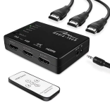 Naprava deluje popolnoma samodejno (Plug & Play) – brez namestitve programske opreme. Preklapljanje je mogoče z gumbom na preklopniku ali s priloženim daljinskim upravljalnikom. LED indikatorji jasno prikazujejo aktiven vhod. Idealno za dnevne sobe, igralne kotičke in pisarne.