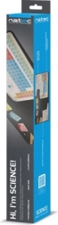 Podloga za mizo Natec Science Maxi zagotavlja ne le udobno uporabo miške in tipkovnice zaradi svojih dimenzij, temveč tudi zaščito delovne mize pred poškodbami. Praktičen in izobraževalni dizajn te podloge vključuje periodni sistem elementov, fizikalne in kemijske konstante ter osnovne formule, kar dela to podlogo idealno orodje za študente.