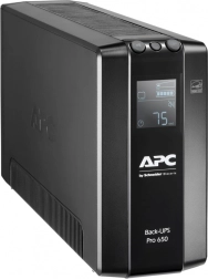 APC Back-UPS Pro 650VA je kompakten in tih UPS, ki zagotavlja nemoteno delovanje vaših računalnikov, NAS-ov, usmerjevalnikov in multimedije ob izpadu ali nihanju omrežja. Vgrajeni AVR izravnava nizko in visoko napetost brez uporabe baterije, s čimer podaljšuje njeno življenjsko dobo. LCD zaslon v realnem času prikazuje preostali čas delovanja, obremenitev in stanje baterije.
