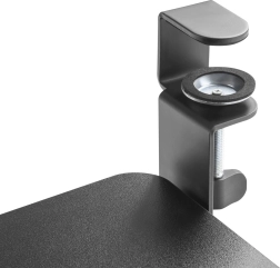 Podmizna polica MC-839 se enostavno pritrdi na rob mize s pomočjo čvrstih spon, zato ni treba vrtati v ploščo ali uporabljati orodja. Široka površina nudi dovolj prostora za tipkovnico in miško, s čimer sprostite delovno površino in izboljšate ergonomijo sedenja.