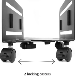 Štiri vzdržljiva kolesca zagotavljajo gladko premikanje po pisarni ali domu, medtem ko dve zavori držita računalnik trdno na mestu med delom.