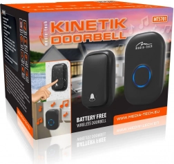 Brezžični in brez baterij zvonec za vrata s kinetičnim gumbom in dosegom do 150 m. Ponuja 51 melodij, 4 stopnje glasnosti vključno z utišanjem ter zunanji gumb z IP44 za zanesljivo delovanje v vseh vremenskih razmerah.