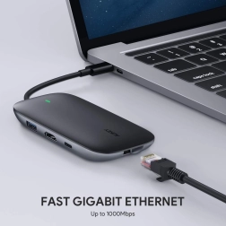Maksimizirajte povezljivost svojega prenosnika z enim samim priklopom. AUKEY 8v1 prinaša hiter USB 3.0 do 5 Gb/s, gladko sliko prek HDMI 4K@30 Hz in stabilno omrežje zahvaljujoč RJ45 10/100/1000 Mb/s. Hkrati napaja naprave prek USB‑C PD do 100 W, zato lahko delate brez omejitev.