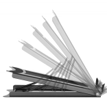 Praktično stojalo za prenosnik ne prihrani le prostora na vaši mizi, temveč tudi izboljša udobje pri delu. Zahvaljujoč petstopenjski nastavitvi kota lahko preprosto prilagodite položaj prenosnika svojim potrebam in tako preprečite bolečine v vratni hrbtenici. Odprta zasnova podpira pretok zraka, kar zagotavlja hlajenje vaše naprave in jo ščiti pred pregrevanjem.