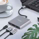 NATEC Fowler Mini spremeni en sam USB‑C priključek vaše naprave v univerzalno razdelilno vozlišče. Omogoča priklop zunanjega monitorja prek HDMI do 4K/30 Hz, hkratno napajanje prenosnika ali telefona z USB‑C Power Delivery 60 W ter uporabo USB 3.0 za hitro povezovanje perifernih naprav. Odporno aluminijasto ohišje in kompaktna zasnova ga naredita idealnega sopotnika na poti in na delovni mizi.