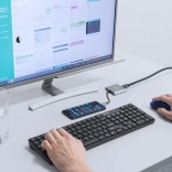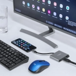 Imate združljiv pametni telefon? Vključite Samsung DeX, Huawei EMUI Desktop ali PC Mode, priključite tipkovnico in miško ter uporabljajte telefon kot namizni računalnik. Adapter je Plug & Play, ne potrebuje gonilnikov in je zasnovan za široko združljivost z napravami z USB‑C.