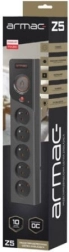 ARMAC Z5 je sodobna prenapetostna letvica, zasnovana za zaščito računalnikov, perifernih naprav, TV, avdio/video opreme in gospodinjskih aparatov. Vrhunski varistor z odzivnim časom pod 25 ns absorbira impulze do 6000 A in ščiti priključene naprave pred nevarnimi napetostnimi sunki. Avtomatska varovalka 10 A/250 V omogoča ponovni vklop po odstranitvi kratkega stika ali preobremenitve.