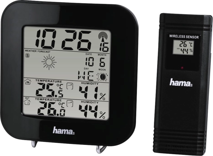 Napoved je prikazana s štirimi razumljivimi simboli (sončno, delno oblačno, oblačno, dež). Indikator udobja z emojiji takoj pokaže, kako prijetna je klima v prostoru. Priročen je tudi pomnilnik min./maks. vrednosti za temperaturo in vlažnost ter možnost priklopa do 3 brezžičnih senzorjev za različne cone doma ali stanovanja.
