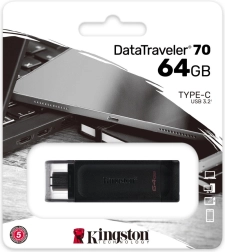 Kingston DataTraveler 70 je praktičen bliskovni pogon s priključkom USB‑C, idealen za prenosnike, tablice in pametne telefone. Zahvaljujoč standardu USB 3.2 Gen 1 zmore hitro kopiranje dokumentov, fotografij in videov, kapaciteta 64 GB pa pokrije vsakodnevno uporabo.