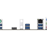 Zadnja plošča z 8× USB 3.2 Gen1, HDMI za integrirano grafiko in 7.1‑kanalnim zvokom Realtek ALC1200 z Nahimic za poglobljeno igralno izkušnjo.