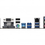 Zadnja plošča ponuja USB 3.2 Gen2 (Type-A in Type-C), več video izhodov (HDMI, DisplayPort, D-Sub) ter zanesljiv Realtek Gigabit LAN za hitro omrežno povezavo.