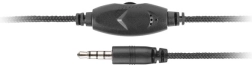 Odporen tekstilni kabel z vgrajenim modulom za nadzor glasnosti in 3.5mm stereo priključkom za enostavno povezavo.