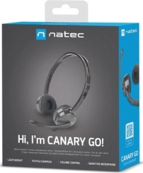 Slušalke z vidnim 'Natec' logotipom na ušesni skodelici. Ponuja nastavljiv naglavni trak za odlično prilagoditev.