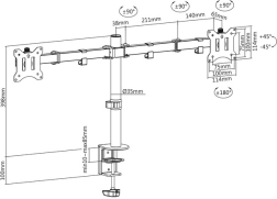 Optimizirajte svoj delovni prostor z dvojnim namiznim nosilcem za monitorje, zasnovanim za zaslone velikosti 15" do 32". Nosilec podpira VESA 75/100 in prenese do 8 kg na monitor. Ta nosilec zagotavlja ergonomsko sedenje z možnostjo nastavitve višine do 31,5 cm.