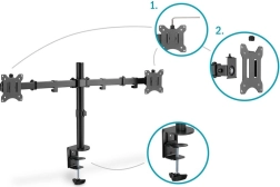 Dvojni namizni nosilec za monitorje s sponko 15"–32", črn