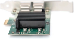 Omrežna kartica Digitus PCI Express Dual-Port Gigabit je opremljena z integriranim Intelovim čipovjem, ki omogoča upravljanje dveh gigabitnih priključkov. Vsak priključek je popolnoma združljiv s standardi IEEE802.3/u/ab in nudi polno gigabitno povezavo. Podpira protokola IPv4 in IPv6, pa tudi jumbo okvirje in funkcije 2. plasti, kot sta IEEE802.1q VLAN in IEEE802.3x Flow Control.