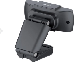 Širokokotni objektiv zajame vas in okolico, kompaktno stojalo pa omogoča stabilno namestitev na monitor ali mizo.