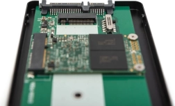 Zaprta aluminijasta konstrukcija ščiti disk in pomaga pri odvajanju toplote. Podpora SATA Rev. 3.2 in DEVSLP zmanjšuje porabo v mirovanju, medtem ko DIP stikalo olajša nastavitev načinov. Z možnostjo zagona z vgrajenega SSD boste dosegli hitrejši zagon sistema in aplikacij.