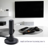 Antena je zasnovana za udobno uporabo v različnih okoljih – od dnevne sobe in pisarne do osebnega avtomobila, tovornjaka (TIR) ali avtodoma. Zahvaljujoč podpori DVB‑T2 lahko sprejemate sodobno digitalno oddajanje brez potrebe po nakupu novega televizorja.
