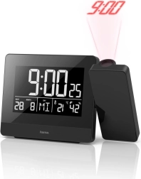 Uživajte v največjem udobju pri branju časa tudi sredi noči. Vrtljiv projektor z možnostjo vrtenja za 360° projicira čas na strop ali steno natančno tja, kjer ga potrebujete. Za točen čas skrbi DCF radijsko vodenje s samodejno sinhronizacijo, pri čemer je časovni pas po potrebi mogoče nastaviti ročno.