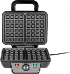 Uporaba aparata za vaflje je res intuitivna! Zahvaljujoč nelepljivemu premazu vročih plošč vaflje zlahka vzamete ven in nato napravo očistite. Termostat ohranja optimalno temperaturo za peko vafljev, svetlobna indikatorja pa nas obveščata, kdaj je aparat pripravljen za uporabo in peko. S funkcijo brezstopenjske regulacije temperature lahko nastavite čas peke od 5 do 15 minut, odvisno od uporabljenih sestavin in vaših okusnih preferenc. Aparat nam omogoča peko dveh velikih vafljev hkrati, zato smo lahko prepričani, da bo vsak obrok topel in hrustljav! Naprava zavzame zelo malo prostora, zato jo lahko vzamete s seboj tudi na dopust, možnost shranjevanja v navpičnem položaju pa prihrani prostor v kuhinjskih omaricah.