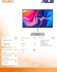 27" monitor PA278CV IPS WQHD HDMI DP USB-C 4xUSB PIVOT Zvočnik